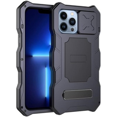 Full Body Armor Case for iPhone 13 Pro Max Cover 12 Military Grade Metal Heavy Duty Water-Resistant Drop Protection,Black,for