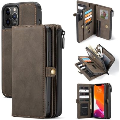 Flip Leather Purse Phone Case for iPhone 13 12 Pro 11 XS Max XR X SE 2020 8 7 Plus Zipper Wallet Card Cover,Auburn,for iPhone 13