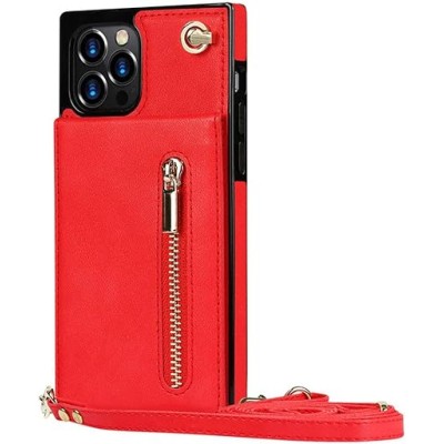 Crossbody Zipper Pocket Card Holder Case for iPhone 11 12 13 Pro Max 7 Plus SE2020 X XS XR Neck Strap Shoulder Bag Cover,red,for