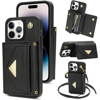 Leather Crossbody Case for iPhone 15 Pro Max 14 13 12 XR XS X 7 8 Plus SE 2022 Multi Cards Solt Wallet Long Lanyard Bag