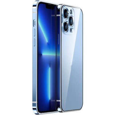 Color Metal Phone Case Transparent Backplate Metal Lens Protector for iPhone 14 Plus 13 Pro Case,Blue,for iPhone 12 Pro