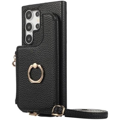 Zipper Cards Holder Leather Wallet Ring Makeup Mirror Case for Samsung Galaxy S24 Ultra S23 Plus S22 A15 A35 A55 A05 A25