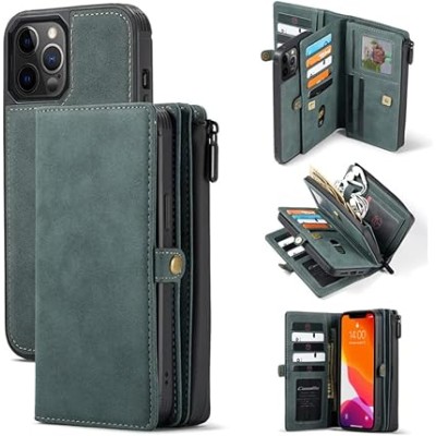Flip Leather Purse Phone Case for iPhone 13 12 Pro 11 XS Max XR X SE 2020 8 7 Plus Zipper Wallet Card Cover,Green,for iPhone 11