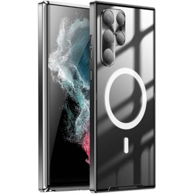 Magnetic case for Samsung Galaxy S22 S21 Ultra 5G Metal Aluminium Alloy Glass Frosted Protective Ultra-Thin Back Cover,Black,for