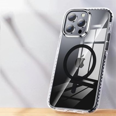 Luxury HD Transparent Phone Cases for iPhone 15 13 12 14 Pro Max 15Pro Clear Magnetic Shockproof Anti-Fall Cover,Black,for