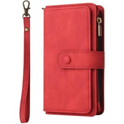 Flip Leather Purse Phone Case for iPhone 13 12 Pro 11 XS Max XR X SE 2020 8 7 Plus Zipper Wallet Card Cover,Auburn,for iPhone 13